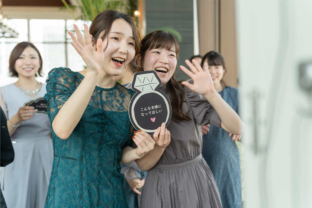 WeddingPartyのお開きに放映される映像、当日のおふたりの笑顔やゲストの表情が収録された映像です。